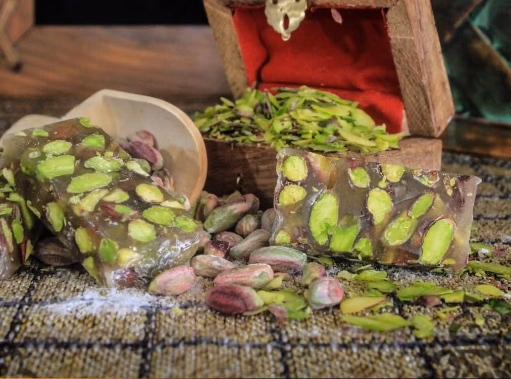 نشاء ، سكر ، ماء ، فستق ، مستكة.